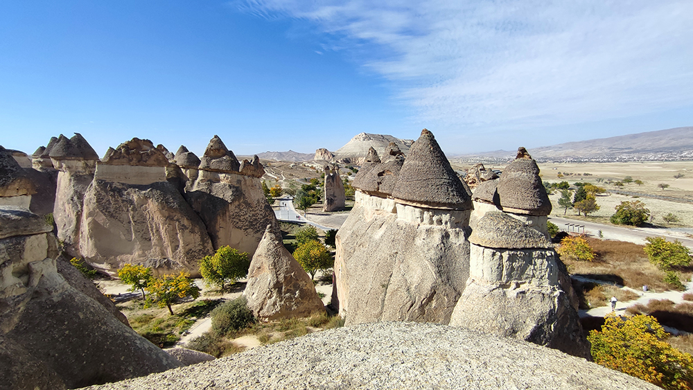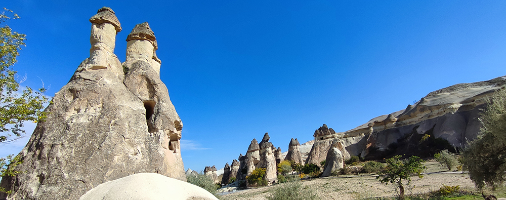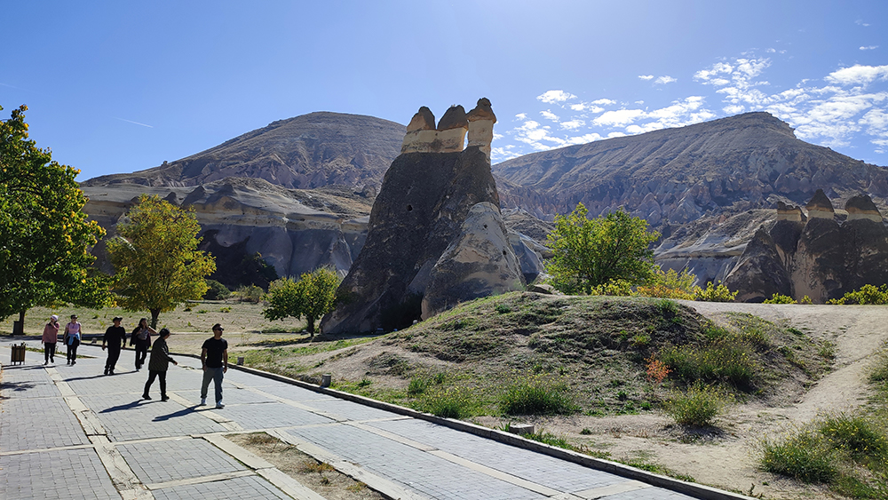 Second Tour Route: Paşabağları (Priests valley): Paşabağları, famous for its three headed fairy chimneys, is among the representative fairy chimneys of Cappadocia. You will find yourself in an enchanting atmosphere with its natural formations, living space, and large church.